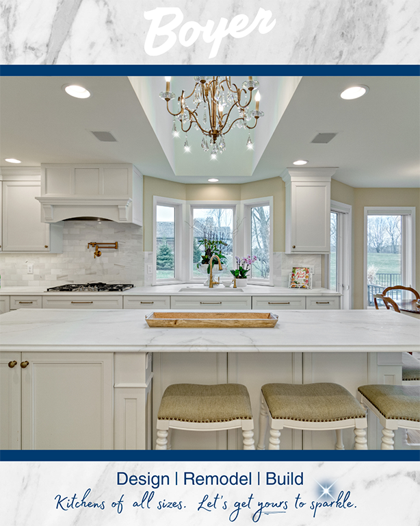Sometimes, it’s the details—a chandelier, a marble-inspired surface, or the view out the window—that make a kitchen sparkle.