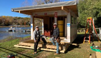 Anticipating next summer’s lake fun is what this water structure/boat house on Lotus Lake in Chanhassen is all