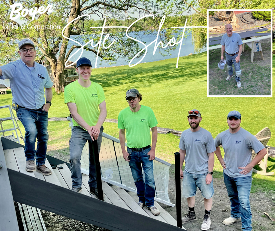 Our amazing Boyer team is hard at work on a full major remodel—deck building, casework install, and serious progress underway. Big thanks to our senior designer Kimberly for capturing the crew in action on this stunning lakefront site!