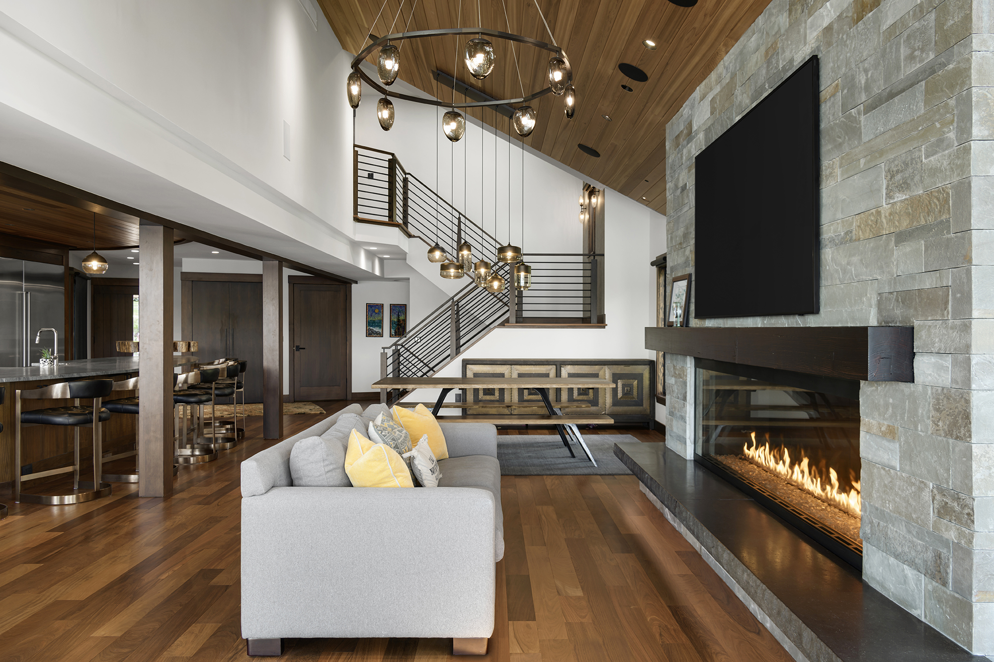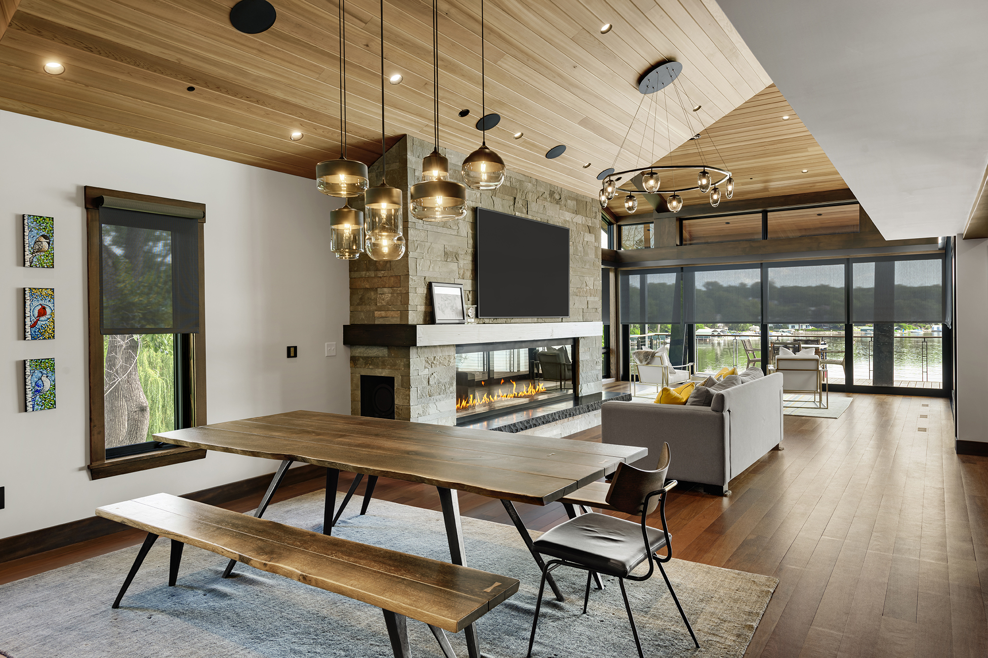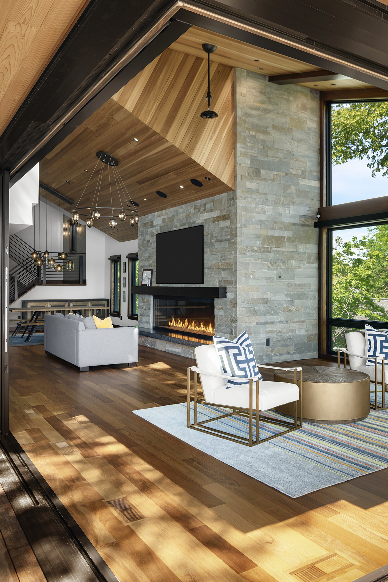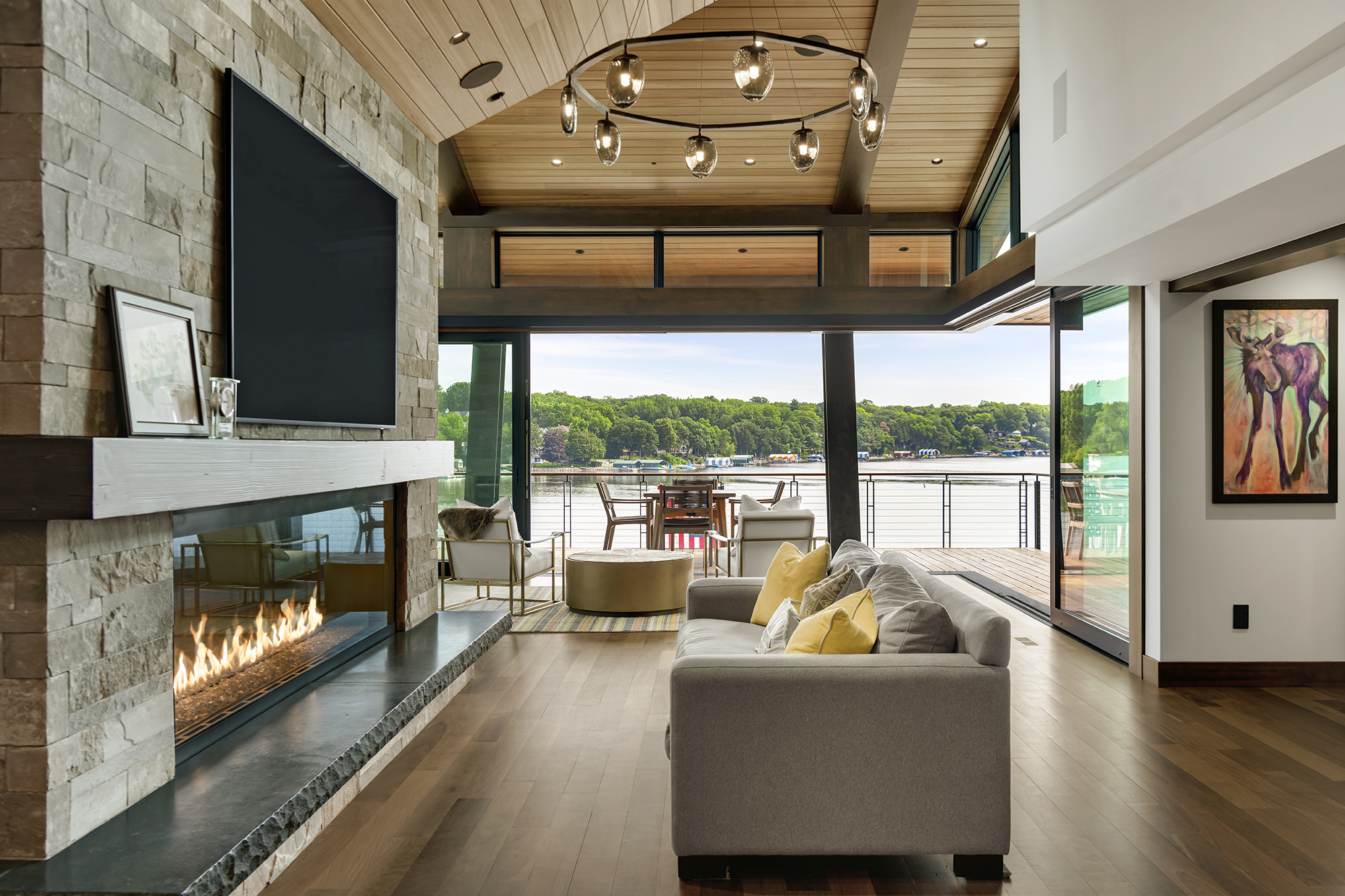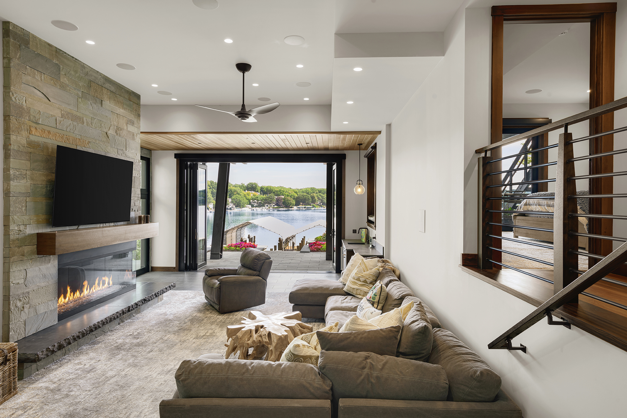 Beyond the addition, the entire home was reimagined inside and out. Interior spaces were fully remodeled with new finishes, cabinetry, stone flooring, fireplaces, and hardwoods, while the exterior was refreshed to complement the home’s modern lakeside presence. The result is a bold, cohesive transformation—one that elevates design, engineering, and craftsmanship into a truly exceptional Lake Minnetonka home.