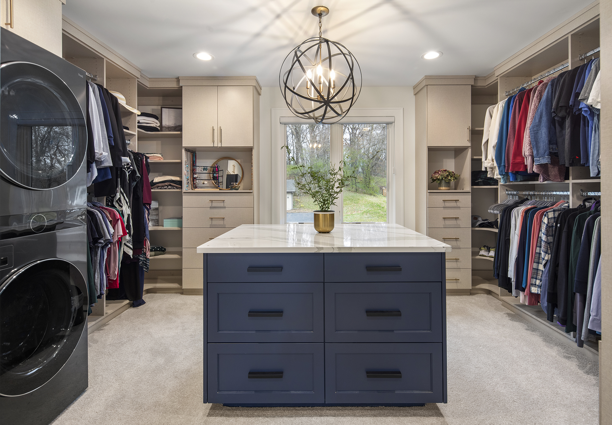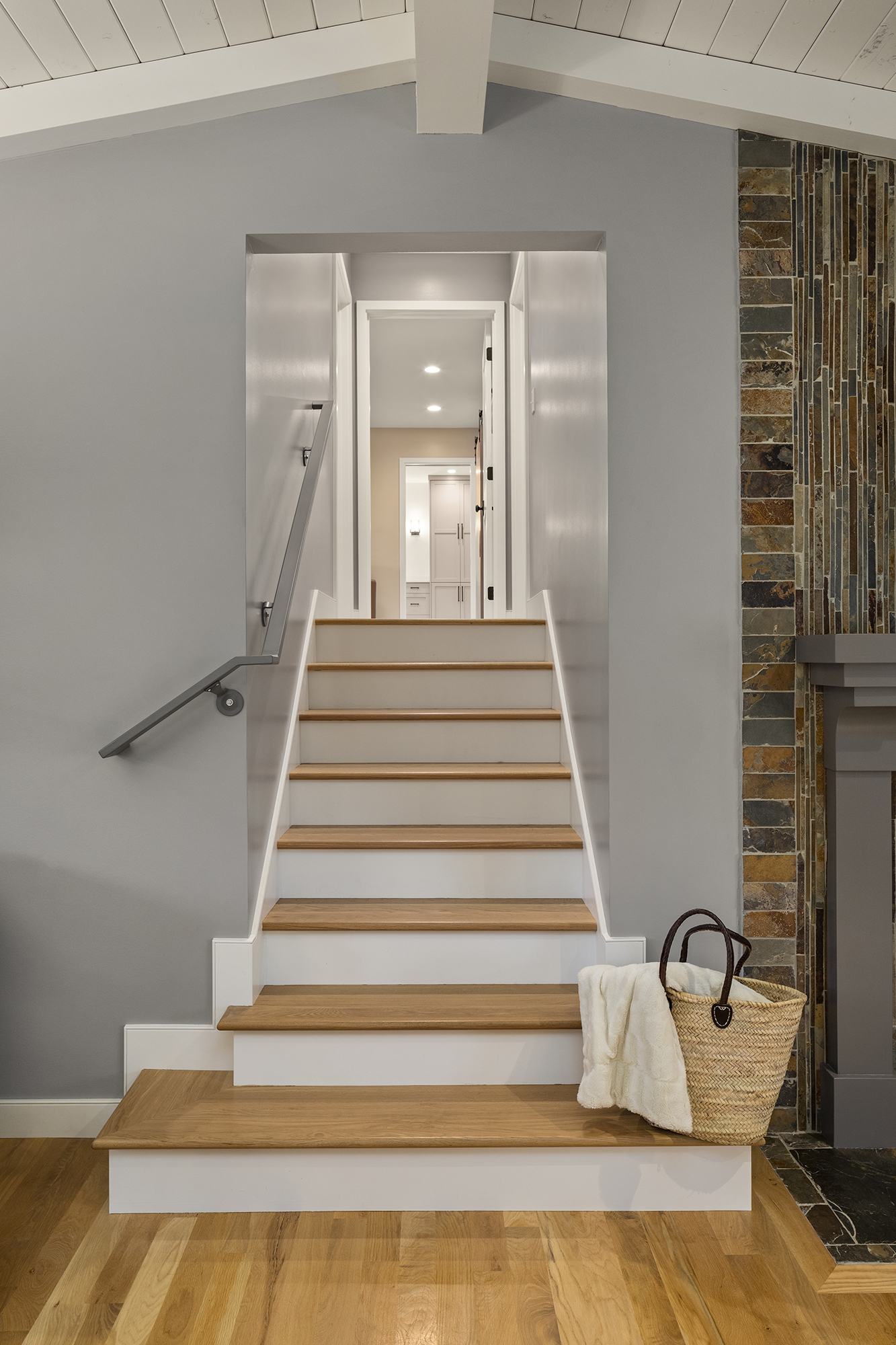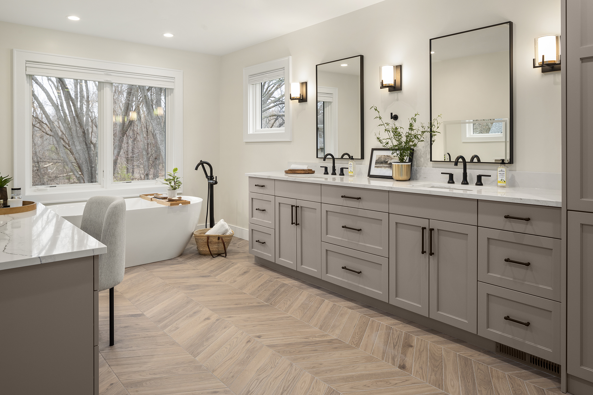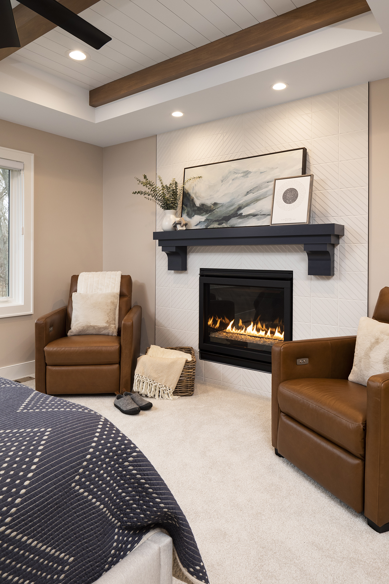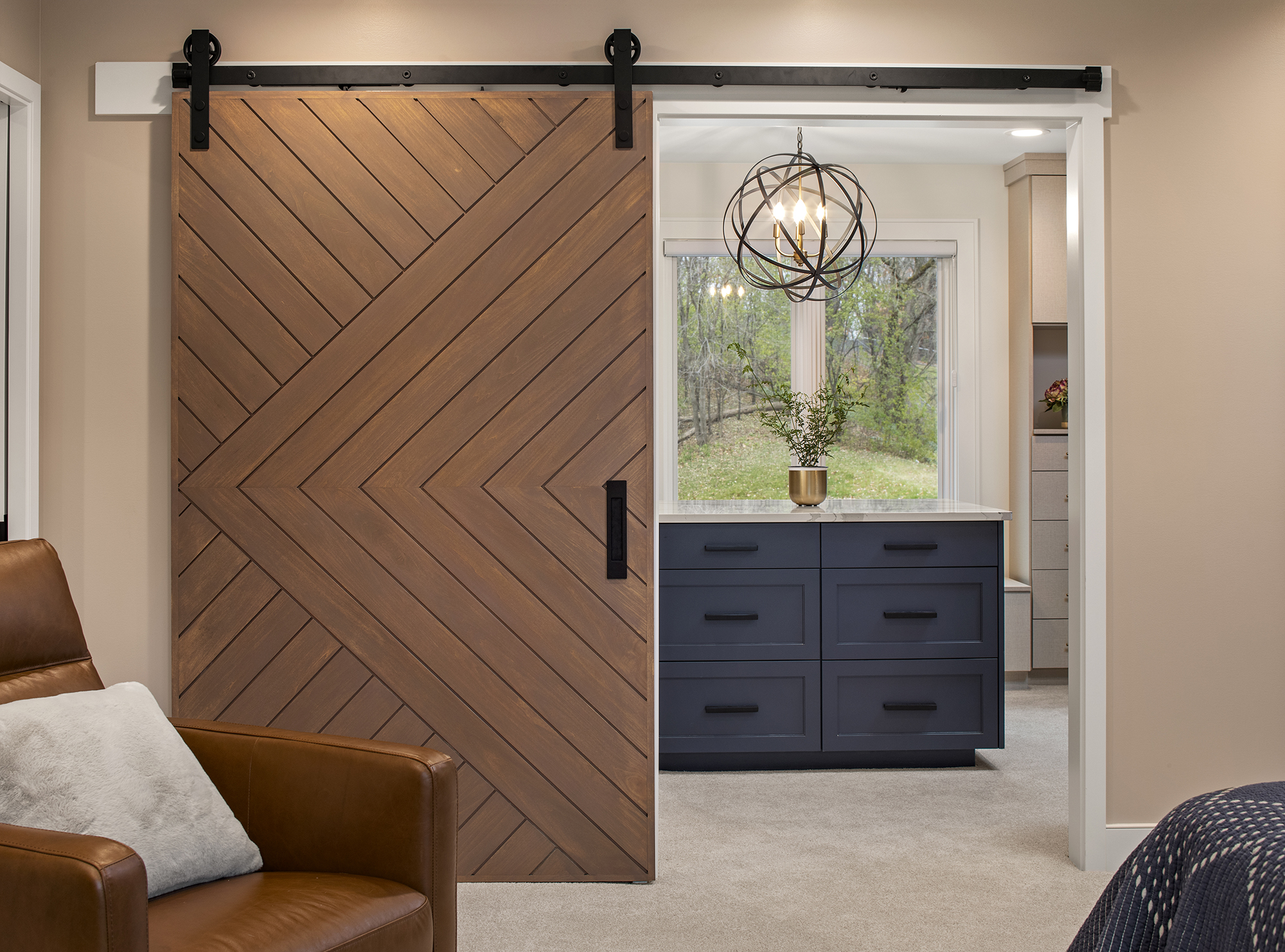 This professional couple and their busy young family needed more garage space and a true primary suite retreat. A new 2-story addition including a 3-car garage, two upper-level private offices, a bedroom suite with fireplace, spa-like bathroom, and large closet met their needs perfectly! A sliding barn door connects the bedroom to a walk-in closet and convenient upper-level laundry. Just steps away, a generous bathroom completes the suite. The new garage addition also allowed for a dedicated dog-wash station—ensuring even the family’s furry members were thoughtfully included.