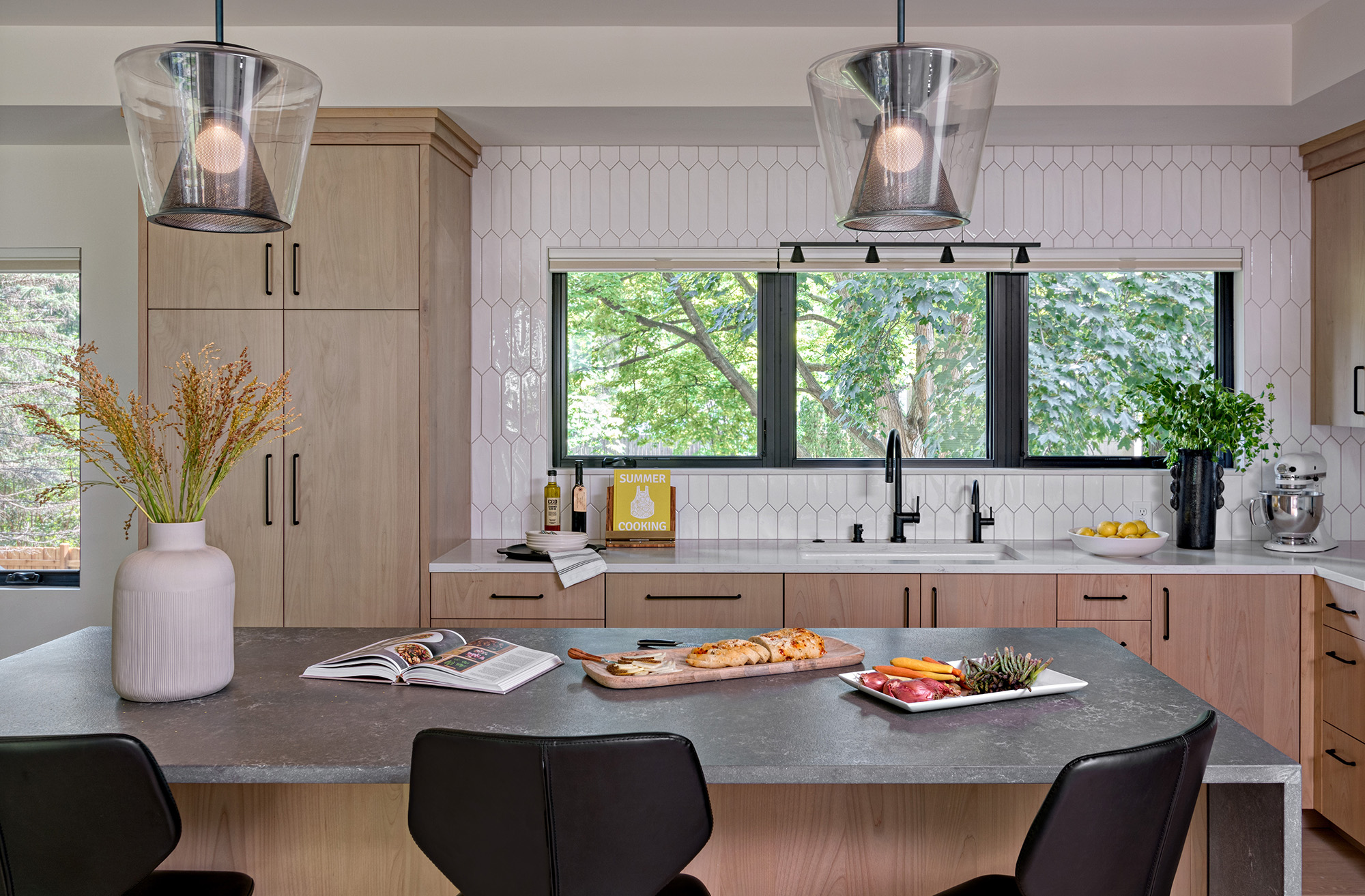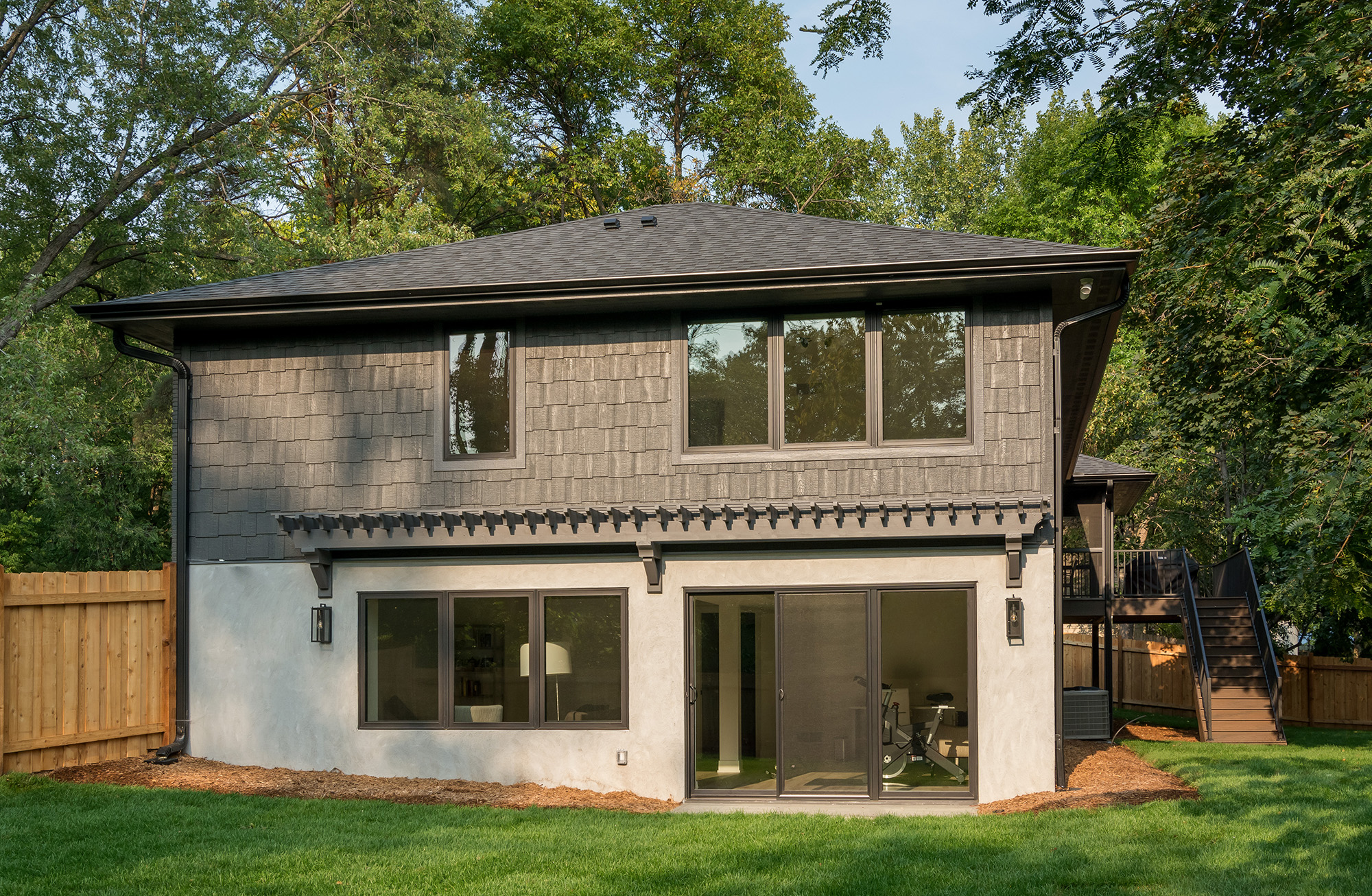 Originally built with a tuck-under garage, the home’s layout no longer supported the family’s needs. Rather than expanding outward, Boyer reworked the structure from within. The garage was relocated to the upper level, allowing the former lower-level garage to be converted into a comfortable family room. This strategic decision unlocked valuable living space and transformed an underutilized area into a welcoming hub for daily life.