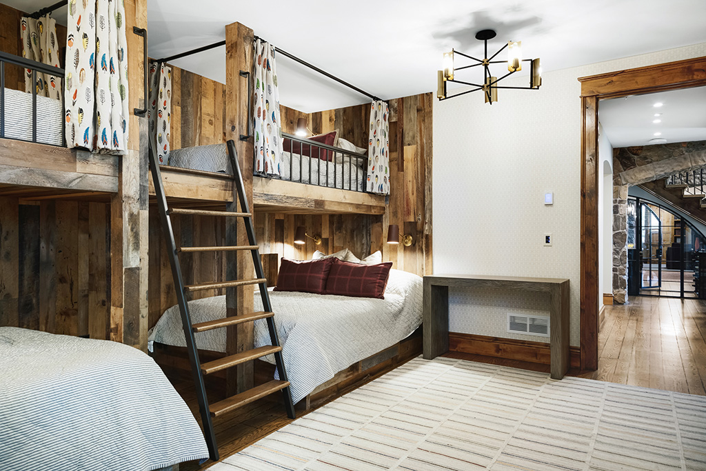 Remodeling on the main floor allowed a new home office and refreshed the kitchen and most other spaces as well. On the lower level, we expanded the TV area, remodeled the kitchenette, added an exercise room, converted a bedroom into a bunkroom, remodeled 2 bathrooms, and created a convenient liquor locker tucked beneath the staircase—creating a home that feels both elevated and perfectly suited for modern living.