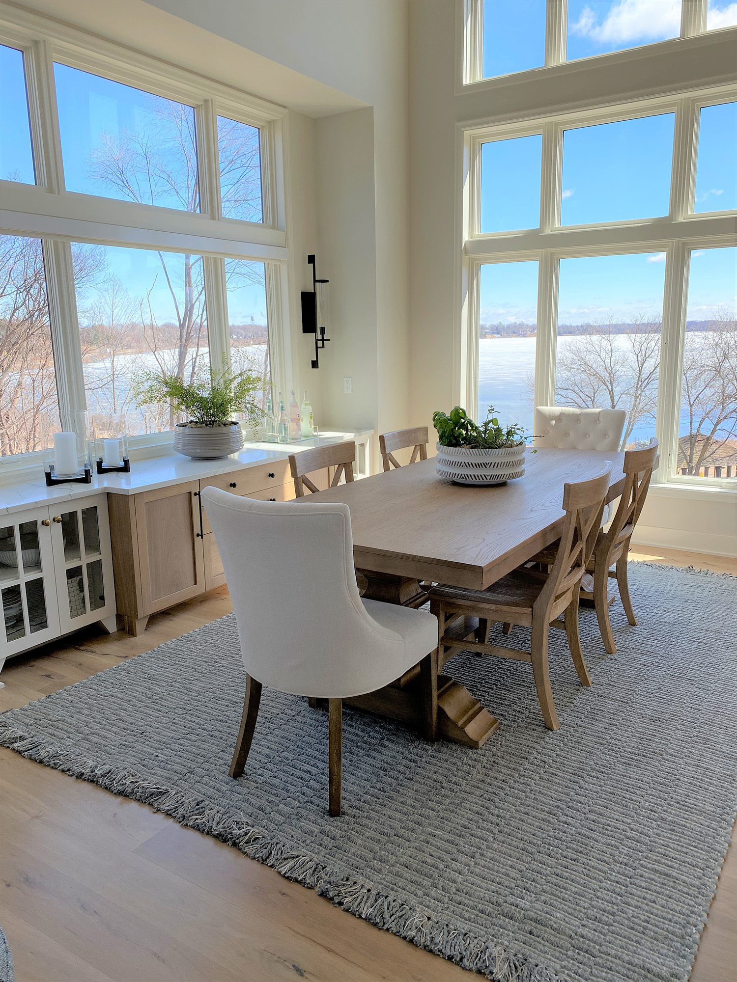 Midcentury modern lake house blending transitional design, natural materials, and expansive water views.